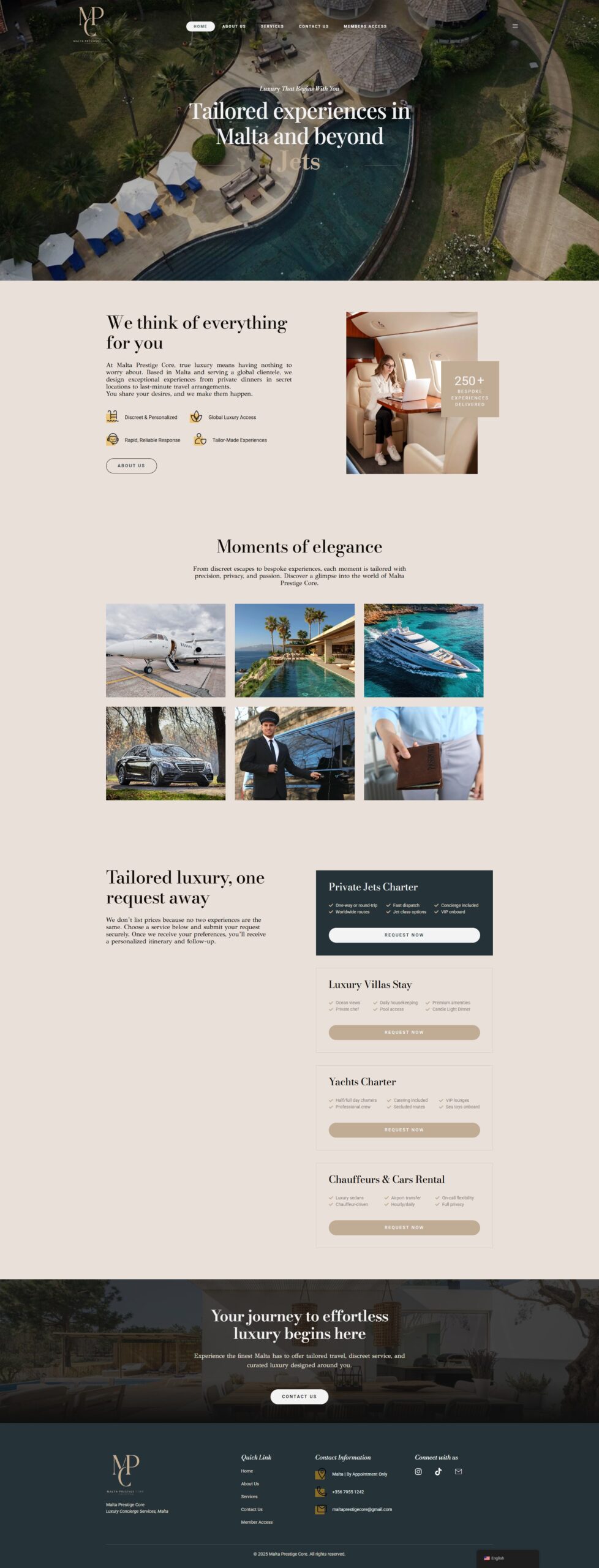 The objective of the Malta Prestige Core project was to develop a digital platform that embodies the luxury and sophistication of Malta. The website features an elegant and minimal theme specifically designed to target a premium clientele. Throughout this project, we focused on ensuring that users experience the essence of “Tailored Luxury” directly through their website browsing journey.